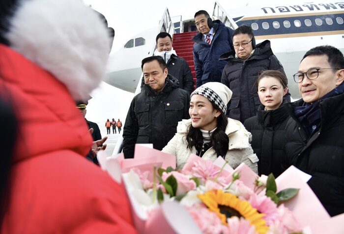 เมื่อเวลา 09.40 น. วันที่ 7 ก.พ.2568 (ตามเวลาท้องถิ่น นครฮาร์บิน เร็วกว่ากรุงเทพฯ 1 ชั่วโมง) น.ส.แพทองธาร ชินวัตร นายกรัฐมนตรี และคณะ เดินทางถึงท่าอากาศยานนานาชาติฮาร์บินไท่ผิง นครฮาร์บิน สาธารณรัฐประชาชนจีน โดยมีนายหลาน เซ่าหมิ่น ประธานสภาที่ปรึกษาการเมืองจีน ประจำมณฑลเฮยหลงเจียง ต้อนรับ โดยมีสตรีชาวจีนมอบช่อดอกไม้ต้อนรับ