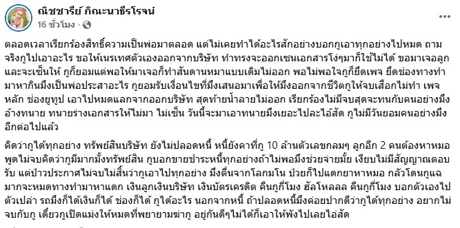คิดว่ากูได้ทุกอย่าง ทรัพย์สินบริษัท ยังไม่ปลอดหนี้ หนี้ยังคาที่กู 10 ล้าน